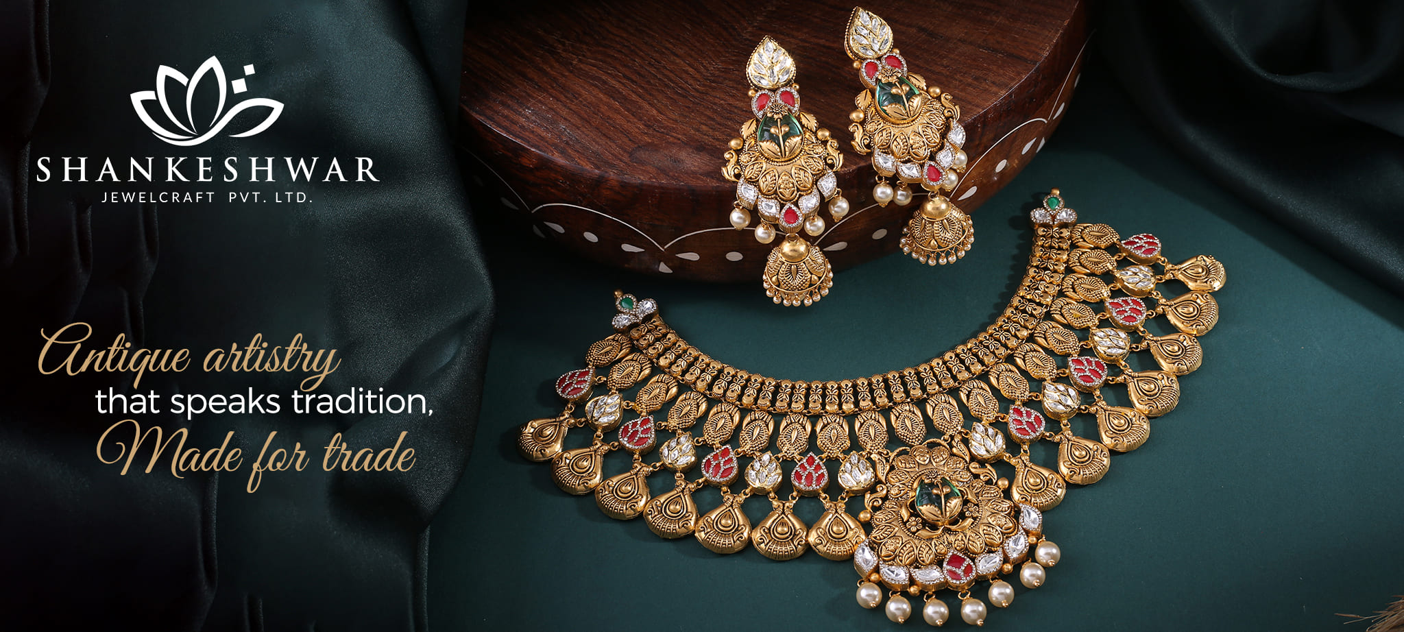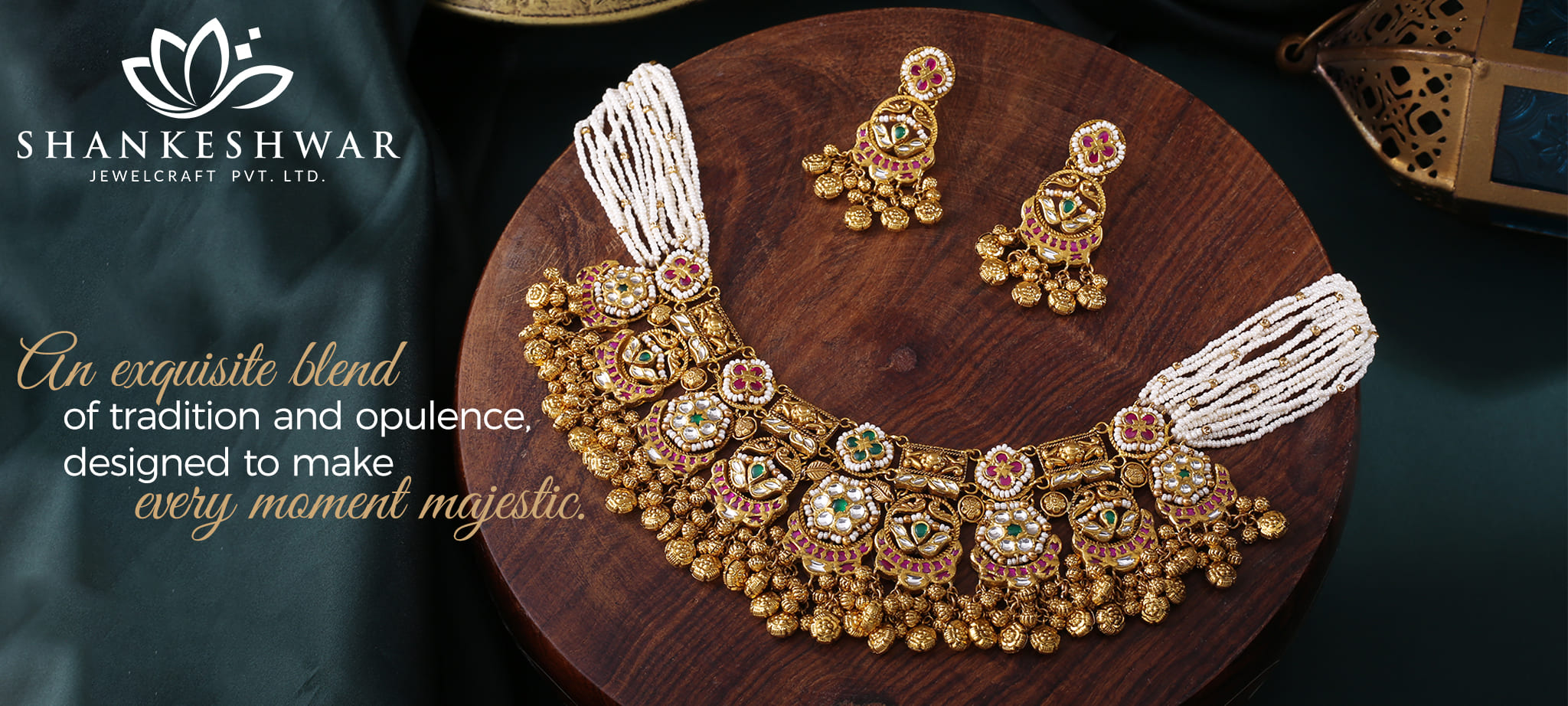 At Shankeshwar Jewelcraft Pvt Ltd, we are dedicated specialists in 22 Karat Antique Gold Jewelry and Kundan Bridal Jewelry, blending traditional Indian artistry with timeless designs.